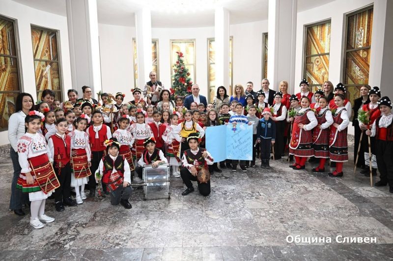 С наближаването на Рождество Христово ученици от ОУ „Елисавета Багряна“ създадоха празнично настроение в Община Сливен. Те поздравиха кмета на общината г-н Стефан Радев и служителите с красив коледен танц, изпълнен от танцов състав „Детелина“.