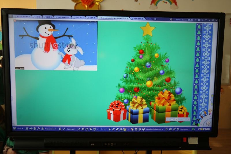 Малките гости бяха тържествено приветствани от четвъртокласниците, които ги посрещнаха с усмивки и приятелско вълнение. Изненадата дойде с появата на аватар на Дядо Коледа, който ги поздрави и още от първите минути създаде топла, празнична и приказна атмосфера. С голямо любопитство децата се включиха в забавни и образователни интерактивни упражнения, които разпалиха тяхното въображение и желание за откриване на нови знания.