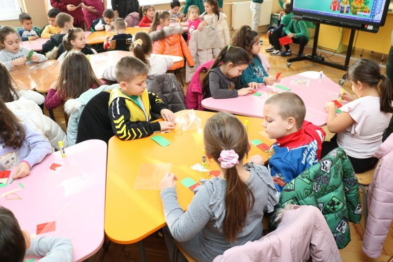 Кулминацията на деня беше творческата работилница, в която с помощта на г-жа Данева, г-жа Грунова от СУ „Йордан Йовков“ и своите учители от детската градина, децата изработиха красиви коледни елфове. С много старание и усмивки те сътвориха малки вълшебства, които ще намерят своето място на коледната елха – като символ на приятелството и с топло коледно пожелание от нашето училище. Празничното настроение беше допълнено и от мил аватар на елфче, което също поздрави малчуганите и ги накара да се почувстват част от една истинска приказка.