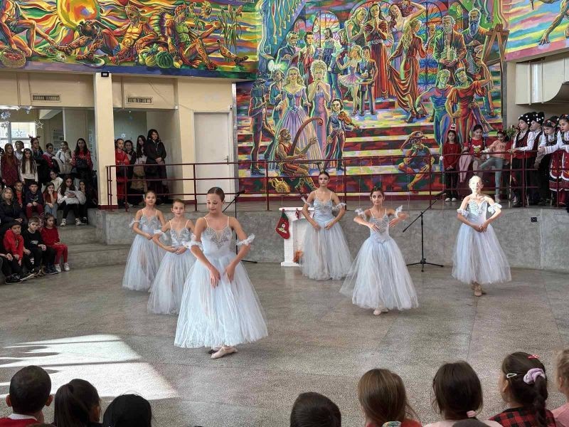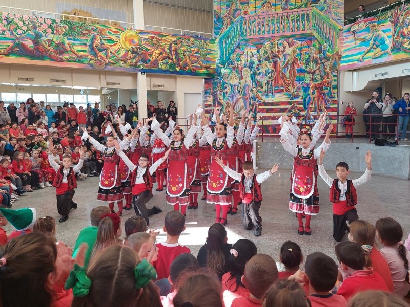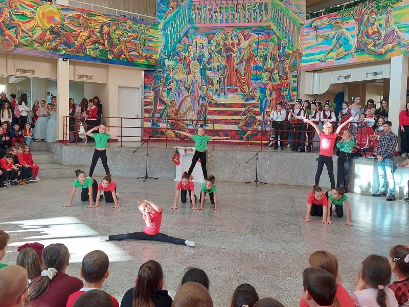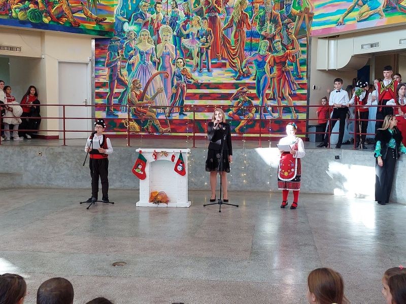 На сцената се изявиха ученици от различни класове с песни, танцови и музикални изпълнения. Публиката се наслади на празнични и коледни песни, впечатляващи народни танци, елегантни спортни танци, както и на традиционни коледни наричания.