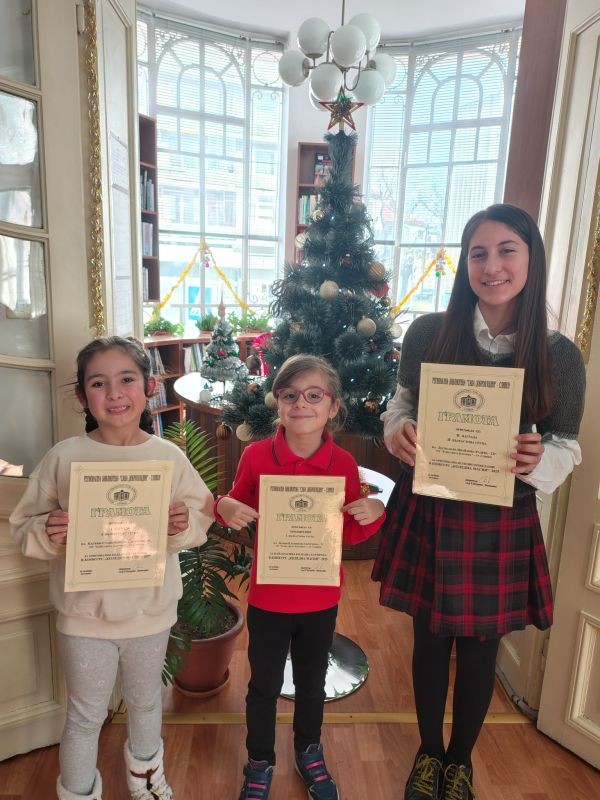 Ученици от ОУ „Елисавета Багряна“ бяха тържествено наградени за отличното си представяне в конкурса за коледна картичка, организиран от Регионална библиотека „Сава Доброплодни“.