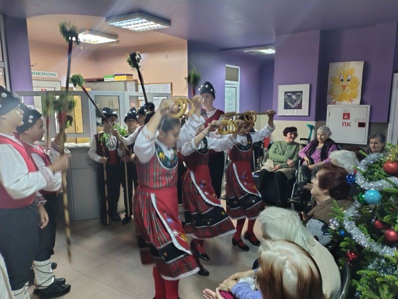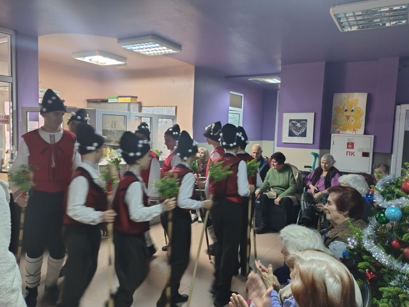 Танцов състав „Детелина“ от ОУ "Елисавета Багряна" с ръководител Магдалена Луканова дари радост и топлина на потребителите в Дома за стари хора, като с коледарски танц им пожела весела Коледа и здраве. Усмивките и сълзите от радост в очите на възрастните хора бяха най-истинското доказателство, че традициите носят утеха, надежда и обич.
