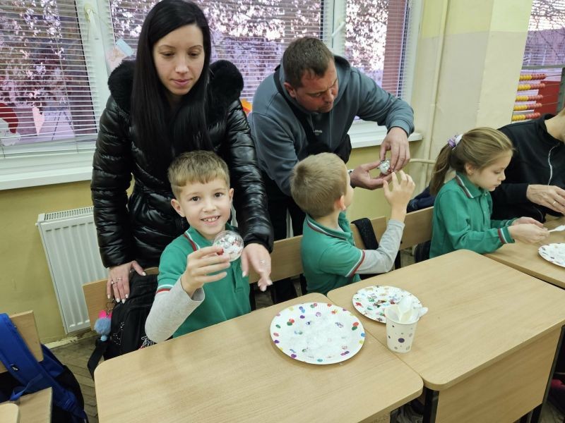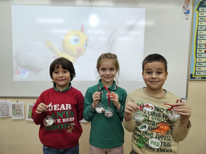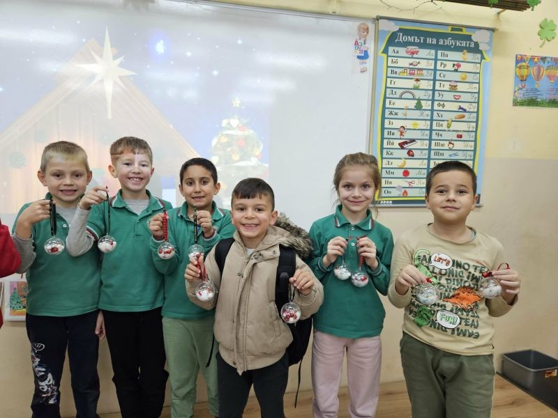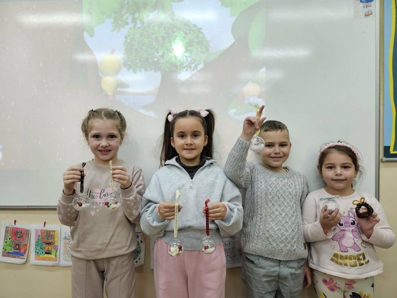 Заедно със своите родители малките ученици изработиха вълшебни коледни топчета, украсени с много фантазия, блясък и празнични цветове. Всяко топче носеше своята малка коледна магия – създадена с детски ръце и големи сърца.