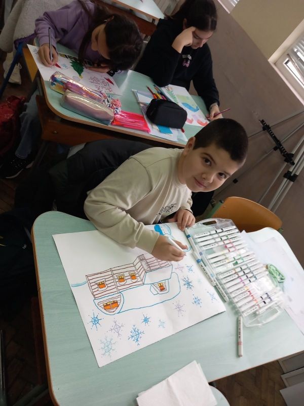 Малките художници от ОУ „Панайот Хитов“ се включиха в конкурса за коледна картичка и оригинално коледно пожелание „ Коледна Магия“ 2025, организиран от Регионална библиотека „Сава Доброплодни„ – Сливен! Учениците от V-ти клас превърнаха художественото ателие в истинска коледна работилница! С много въображение и предпразнично настроение, нашите ученици се впуснаха в поредното си
