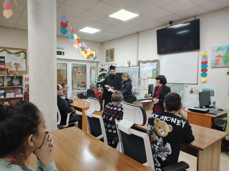 Митрополитският дякон Владимир Рогачев и г-жа Ани Вълева, директор на Културно-просветния отдел при Сливенска митрополия, предадоха от името на Сливенския митрополит Арсений сърдечни поздрави, благопожелания и дарове по повод предстоящия светъл празник Рождество Христово.