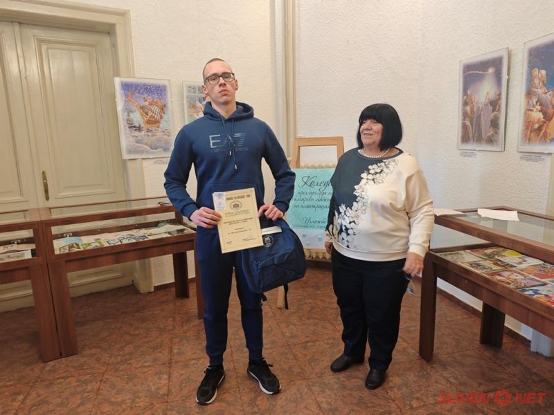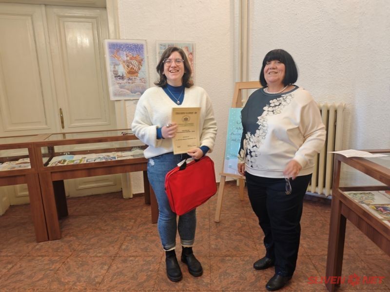 Специално отличие получи учителката по БЕЛ в Професионалната гимназия по хотелиерство и туризъм – гр.Сливен Катя Пламенова Радева за активното й партньорство с библиотеката, организираните уроци и посещения, в резултат на които 130 нейни ученици вече са регистрирани читатели на библиотеката за новата календарна година.