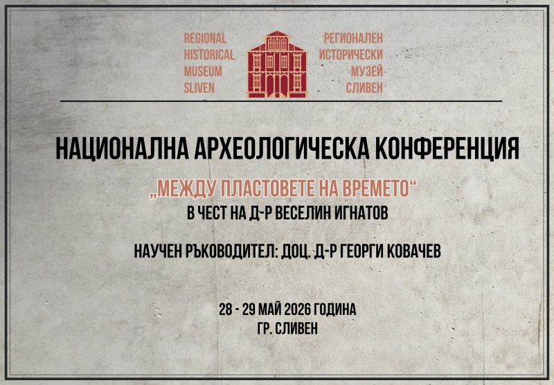 Регионален исторически музей „Д-р Симеон Табаков“ – Сливен Ви кани да вземете участие в Националната археологическа конференция „Между пластовете на времето“, посветена на дейността на археолога д-р Веселин Игнатов. Поканата е насочена към български и чуждестранни изследователи на археологията, изкуството и историята.