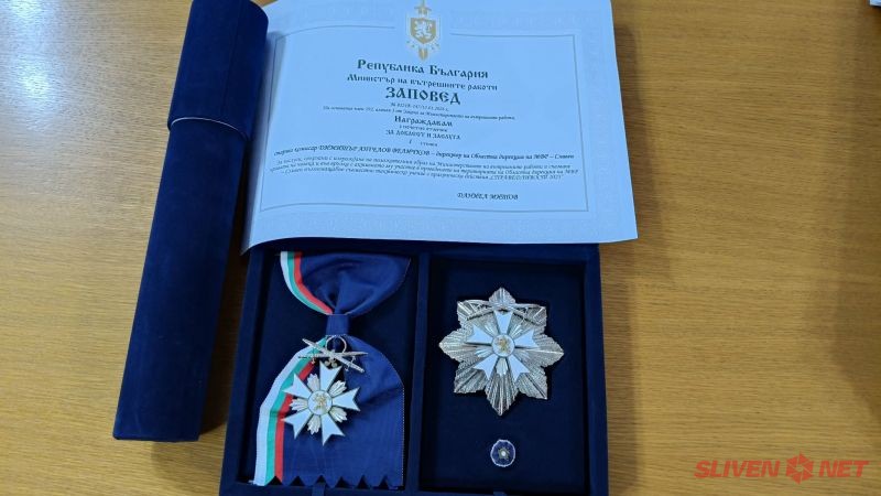 Директорът на Областната дирекция в Сливен получава отличието по предложение на главния секретар на МВР и директора на Главна дирекция „Национална полиция” за успешното провеждане на пълномащабно съвместно тактическо учение с практически действия „СПРАВЕДЛИВОСТ 2025”.