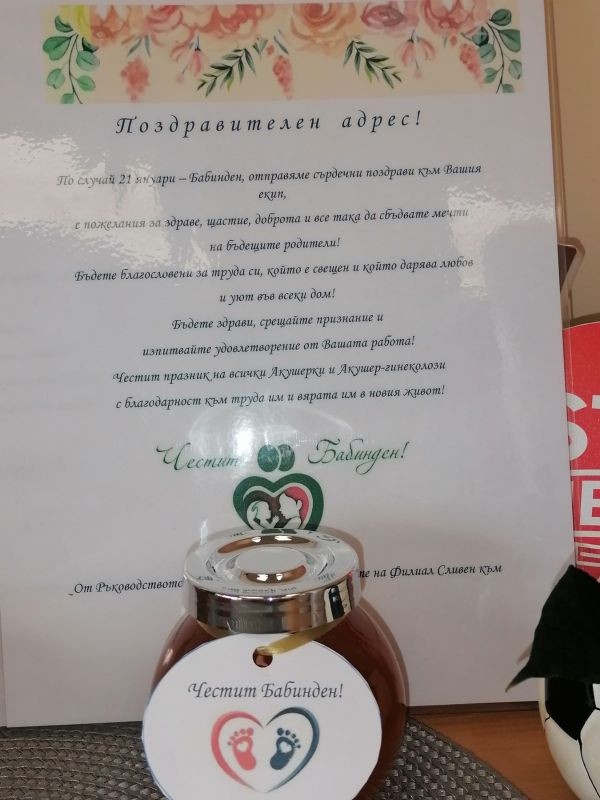 „Бъдете благословени за труда си, който е свещен и който дарява любов и уют във всеки дом. Бъдете здрави, срещайте признание и изпитвайте удовлетворение от вашата работа“, пише в поздравителен адрес от тях до акушерите и гинеколозите в болницата по повод 21 януари - Ден на родилната помощ, Бабинден.