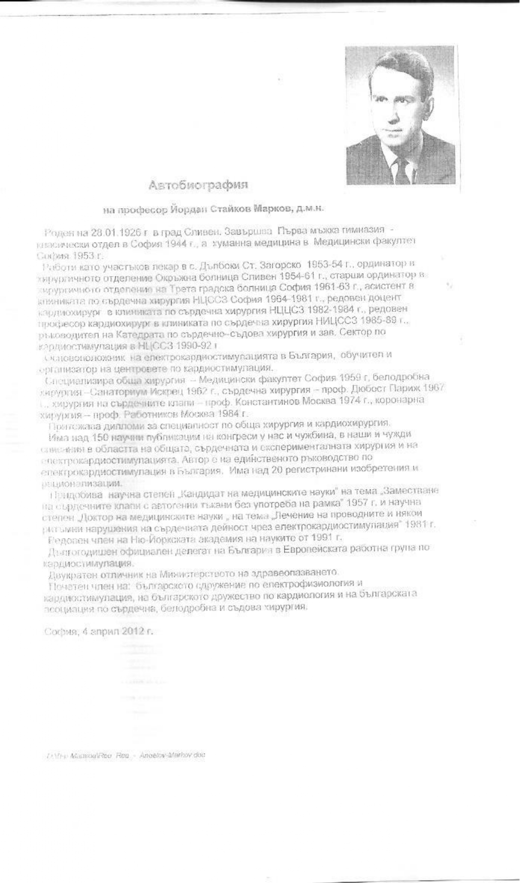 Професор Йордан Стайков Марков - д.м.н.