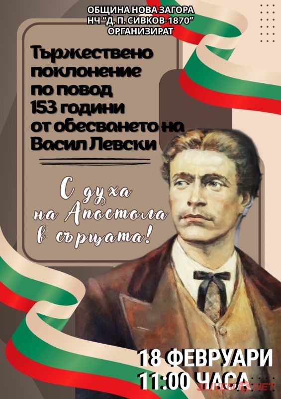 Община Нова Загора кани всички жители и гости на града да се присъединят към тържествената церемония, която ще се състои от 11:00 ч. пред паметника на Апостола. Там ще сведем глава пред неговата саможертва и ще си припомним заветите му, които и днес остават морален ориентир за поколенията.