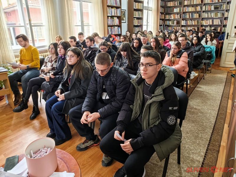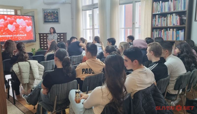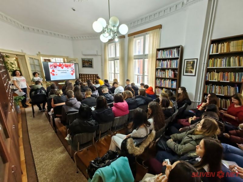 И тази година на това прекрасно чувство бяха посветени редица инициативи, организирани от РБ ”Сава Доброплодни”, насочени както към младежката аудитория, така и към всички сливенски граждани. Интересът към проявите беше много голям, особено сред тийнейджърите. Над 400 ученици от 8-12 клас от ППМГ „Добри Чинтулов”, ХГ „Дамян Дамянов”, ГПЗЕ “Захарий Стоянов“, ГПХТ “Акад. Неделчо Неделчев“, НХГ „Димитър Добрович“ и СУ „П. К. Яворов“, посетиха проявите по график.