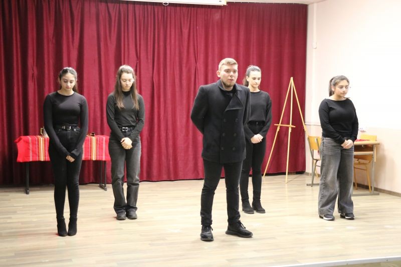 В нашето училище тържествено отбелязахме 153-тата годишнина от гибелта на Васил Левски под знака на думите: „Времето е в нас и ние сме във времето“.