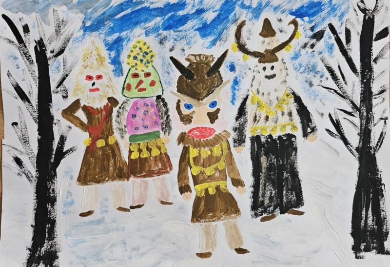Под ръководството на своя учител г-жа Здравка Долушанова те създадоха пъстри и вдъхновяващи творби, пресъздаващи силата и символиката на кукерските обичаи.