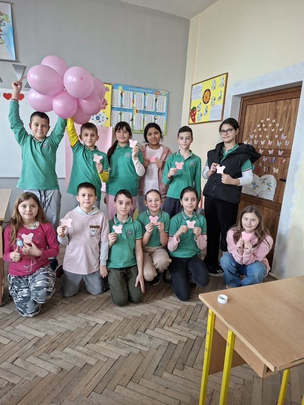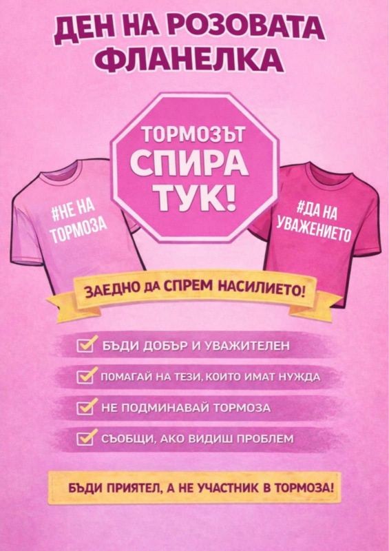 Учениците от Ученическия съвет сами изработиха и раздадоха розови фланелки с посланието на деня на всички свои съученици, за да напомнят, че училището ни е място на взаимно уважение, подкрепа и приятелство.