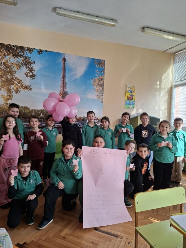 Днес в нашето училище отбелязваме Световния ден на „Розовата фланелка“!
