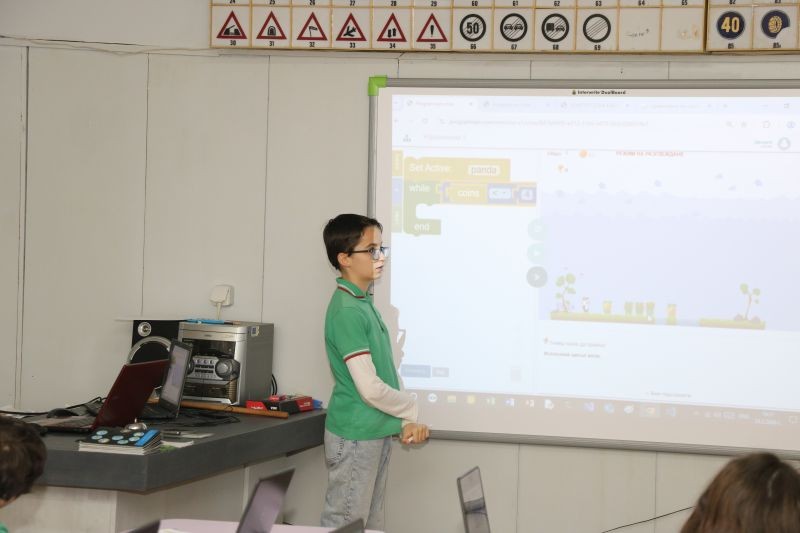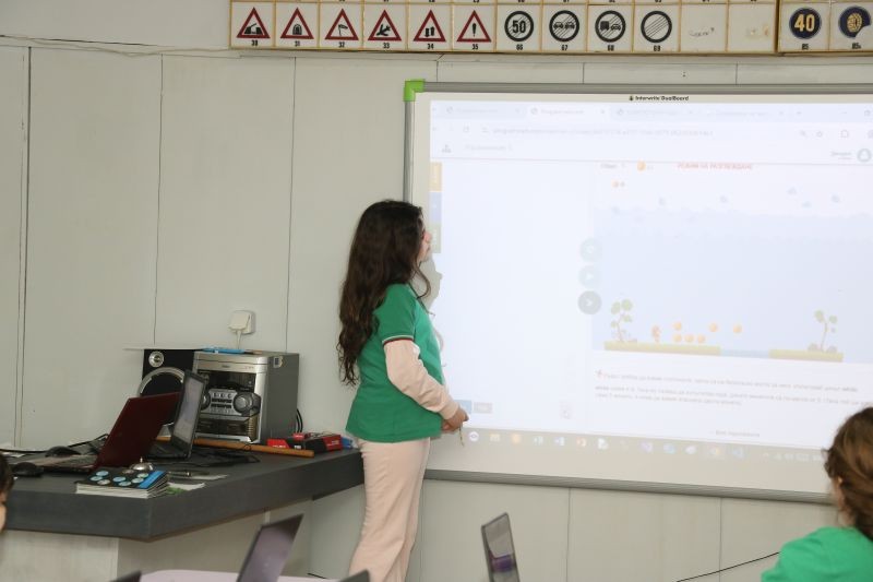 В програмната част на урока учениците използваха именно сравнението на числови стойности, за да управляват изпълнението на поредица от команди. Чрез условни конструкции те създадоха алгоритми, в които дадено действие се изпълнява само при определено условие – например ако едно число е по-голямо от друго. Така математическата логика естествено премина в алгоритмично мислене.