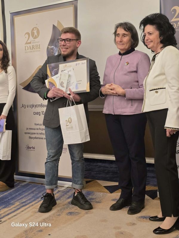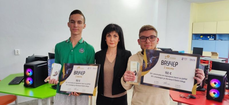 Даниел Константинов и Венцислав Колев от СУ „Йордан Йовков“ – Сливен завоюваха второ място в националния конкурс „Аз и изкуственият интелект след 10 години“, организиран по повод 20-годишнината на образователна институция „ДАРБИ“ – „DARBI COLLEGE INTERNATIONAL SCHOOL“.