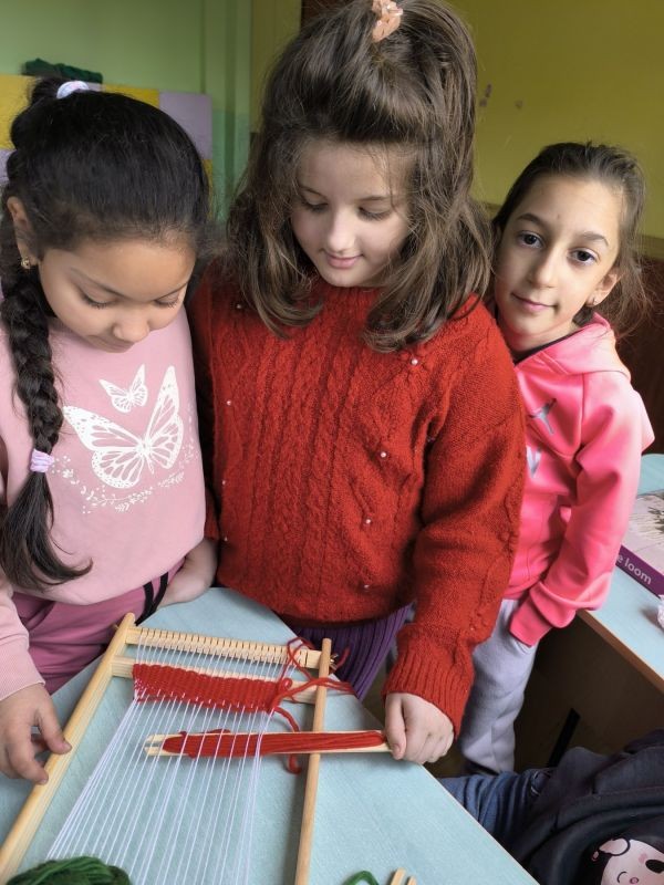 В групата за Целодневна организация на учебния ден (ЦОУД) с преподавател Марияна Добрева, класната стая се превърна в истинска занаятчийска работилница. Учениците от 1. и 2. клас се потопиха в магията на традициите, като сами изтъкаха българския трибагреник на ръчен стан.