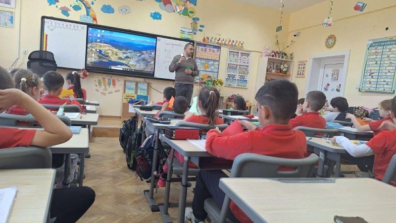 На 9. 03. 2026 г. в 1. „г“ клас се проведе открит урок по математика на тема „Събиране на 8 с едноцифрено число с преминаване“. Урокът на г-н Димитър Гюмишев се проведе в часовете за самоподготовка в следобедните занимания на ЦОУД.