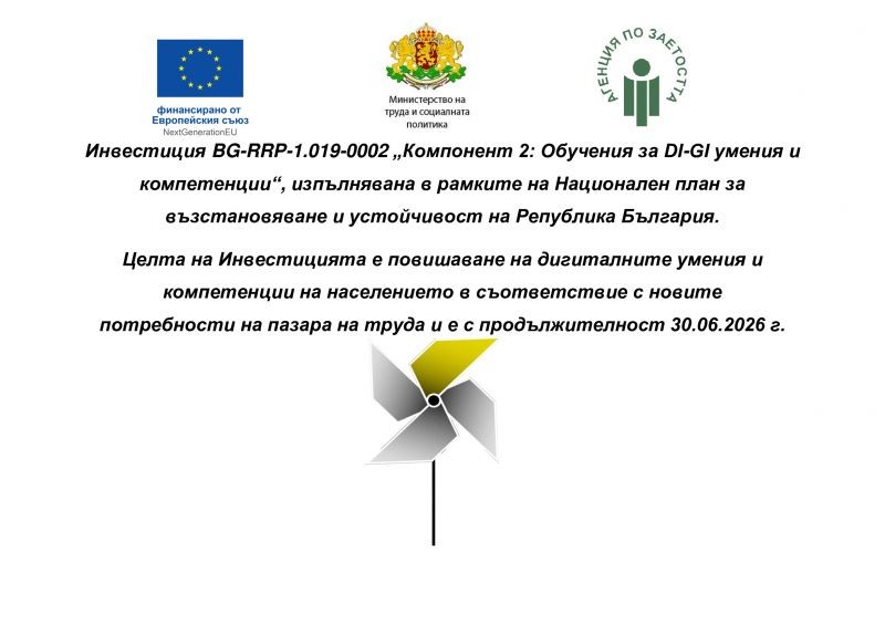 През месец февруари-март 2026 година, РЦИР организира безплатни обучения за придобиване на дигитални умения по ключова компетентност (КК) 4 „Цифрова компетентност“, „Компонент 2: Обучения за DI-GI умения и компетенции“ от Инвестиция C1.I3 - ПЗ „Предоставяне на обучения за дигитални умения и създаване на платформа за обучение на възрастни“ се реализира в рамките на Национален план за възстановяване и устойчивост и се финансира от Европейския съюз посредством „Следващо поколение ЕС“.