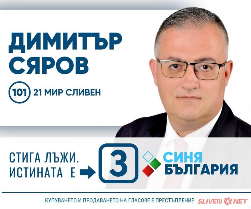 За кандидатите на Синя България в изборите в 21 Сливенски избирателен район да заложим на НОМЕР 3 в интегралната бюлетина.