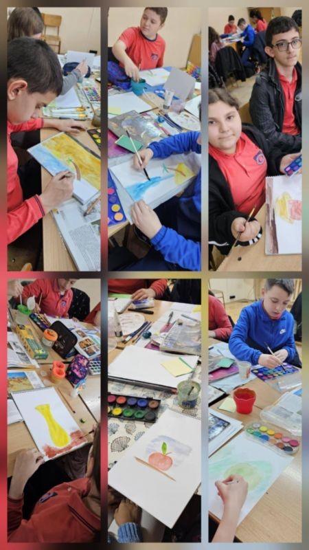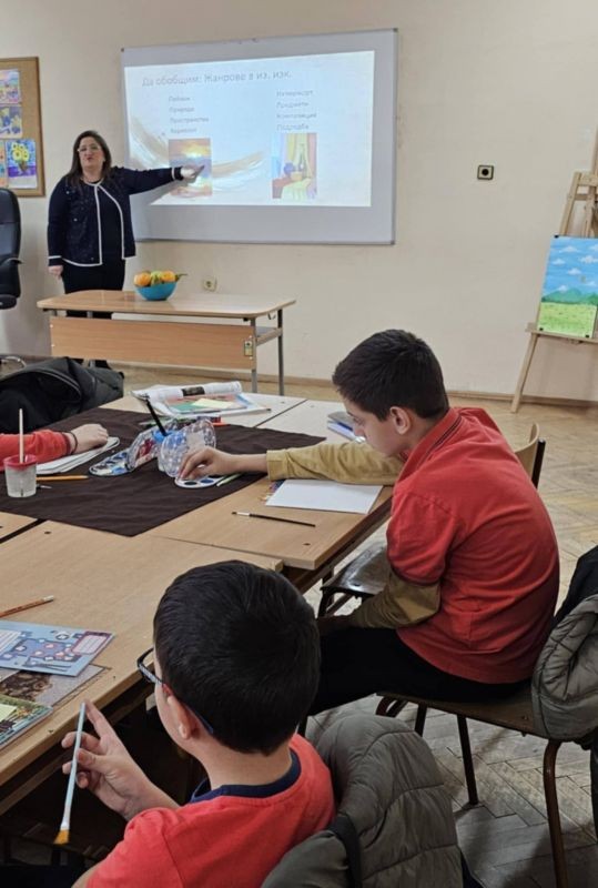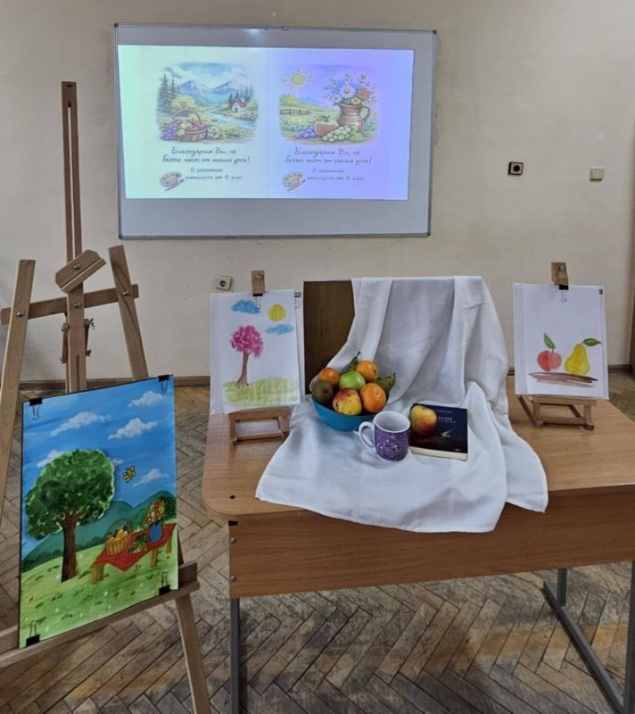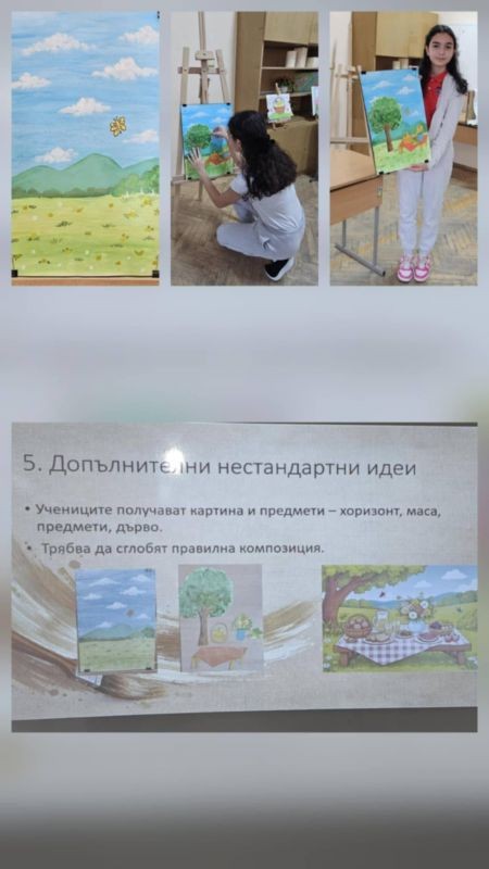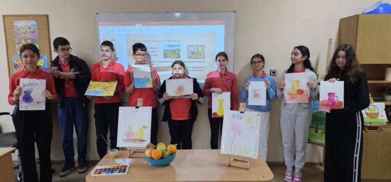 След интерактивната част урокът премина към творческа дейност, в която учениците приложиха наученото на практика. Те избраха да нарисуват пейзаж или натюрморт, като предварително получиха демонстрация и насоки от учителя.