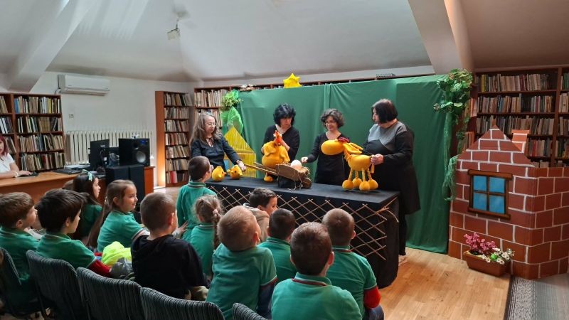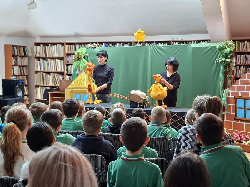 Учениците от 1. „А“, 2. „А“, 3. „А“ и 3. „Б“ клас се потопиха в света на театъра по време на Седмицата на детската приказка с посещение на спектакъла „Яйцето“ в Регионална библиотека „Сава Доброплодни“ – Сливен.