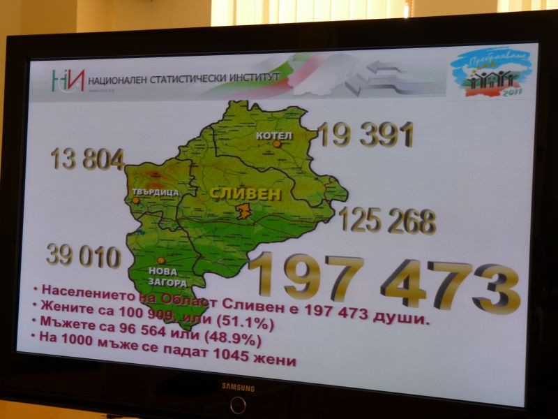 Днес, 21 юли 2011 г. в заседателната зала на областна администрация от ТСБ-Сливен обявиха окончателните резултати от проведеното Преброяване на населението и жилищния фонд през 2011г.