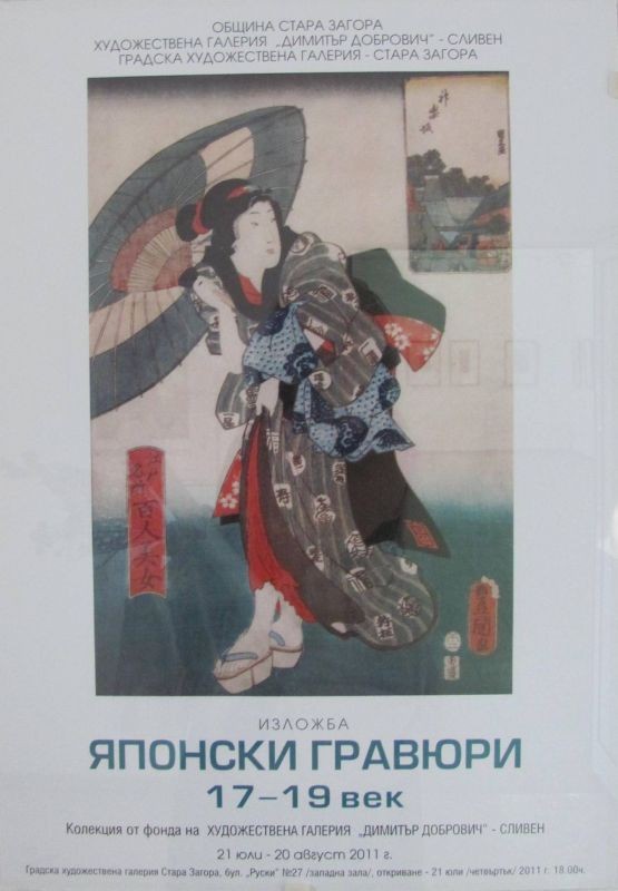 В горещия юлски ден залите на Градската художествена галерия в град Стара Загора бяха препълнени от стотици почитатели на изобразителното изкуство. Изненада поднесе богатата колекция от 50 изящни японски гравюри от 17-19 век., собственост на Художествена галерия „Димитър Добрович” – Сливен. Това е палитра от изящество и красота, където господства идеята за непрекъснато движение на обкръжаващия свят.
