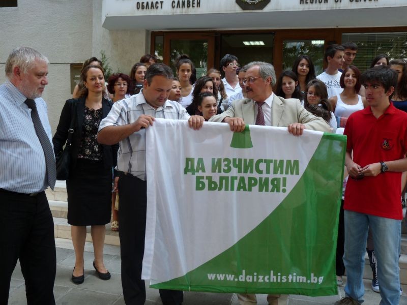 На 1 септември 2011 г. в 11:00 часа областният управител г-н Марин Кавръков и заместник областните управители г-н Пейчо Пейчев и г-н Христо Карабекиров получиха знамето на кампанията на бТВ „Да изчистим България за един ден”. То беше връчено от екипа на БТВ – Ямбол в присъствието на регионалните и национални медии, на представители Българското дружество за защита на птиците, организацията на българските скаути, ПП „Сините камъни”, ученици от клуб „Екология” към ІІІ – то ОУ ”Иван Селемински” и още много ученици Сливенските училища.
