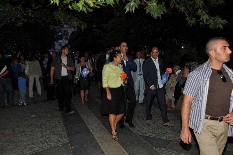 Кандидатът за кмет на Сливен Йордан Лечков и кандидатите за общински съветници от листата на ГЕРБ посрещнаха председателя на предизборния щаб Цветан Цветанов. Те заедно премина през центъра на града, приветствани от местните хора и се отправиха към площада пред НТС, където кампанията бе открита.