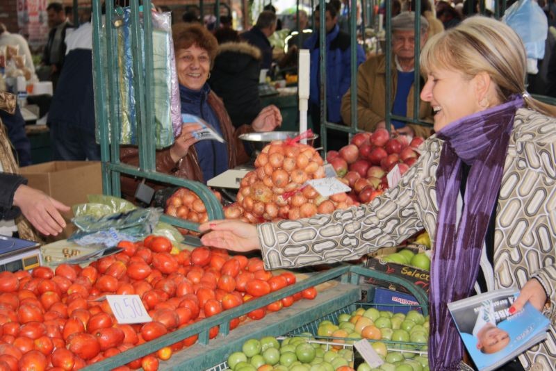 Търговците приеха със задоволство новината, но не спестиха въпросите си дали ще се подобрят условията им на работа, предложиха да се направят някой подобрения. Кандидатите от общинската листа на ГЕРБ обещаха на пазара да се монтират странични щори на масите срещу вятъра, както и да се стегне покривът на общинското предприятие „Общински пазари”.