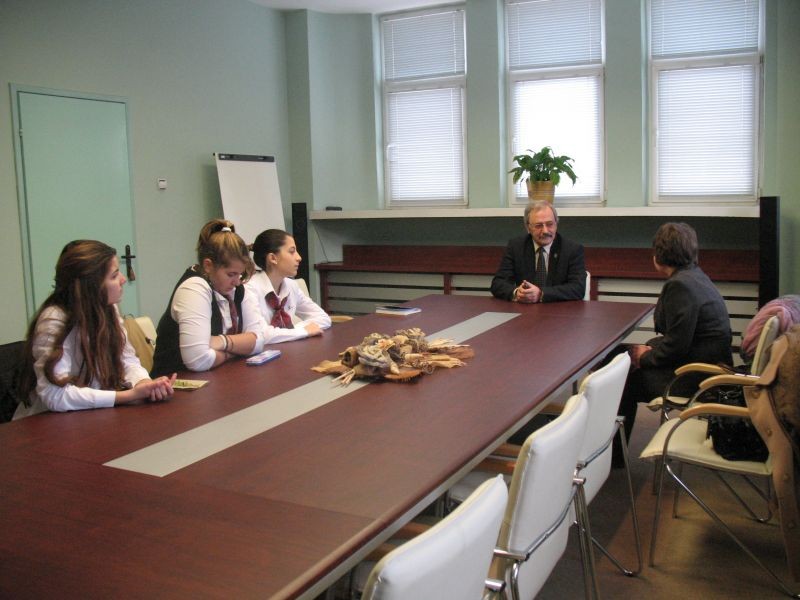 Ученици и учители от Хуманитарна гимназия на среща с г-н Кавръков