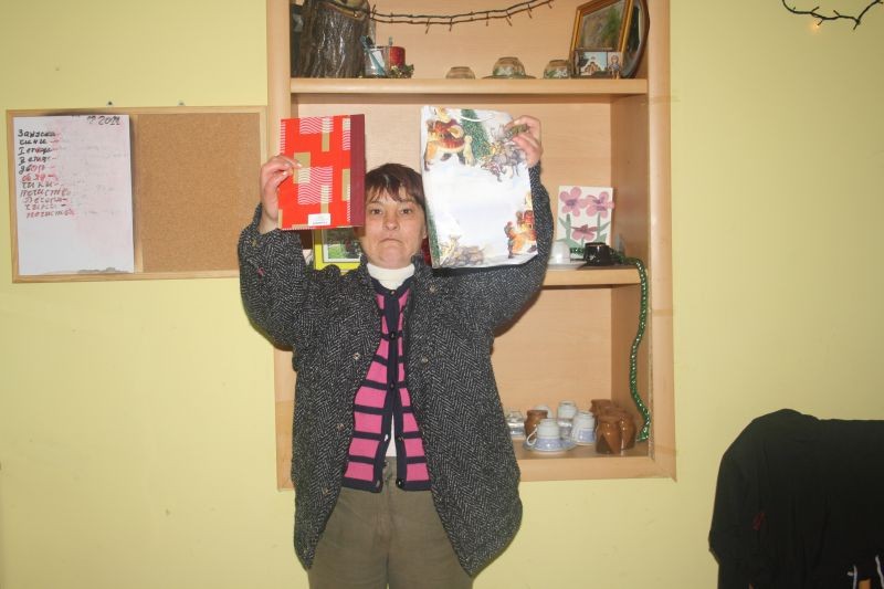 40-годишната Росица Йончева е много доволна от подаръците, като най-много се радва на пособията за писане. Не знае какво иска да й донесе Дядо Коледа, но се чувства щастлива в Защитеното жилище. Разказва, че с другите жени се разбира много добре, как си готвят сами и поддържат къщата чиста.