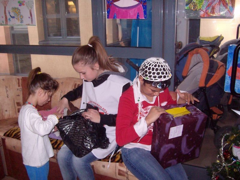 На 21.12.2011 ние от клуб „Безвъзмездна помощ” за пореден път изпълнихме своята коледно-новогодишна мисия. Събраните дарения от благотворителната акция на нашите съученици послужиха за закупуване на лакомства, с които създадохме радост в душите на нашите нови приятели от Защитено жилище- „Българка” 58. Още по-голяма беше радостта на децата в неравностойно положение от Дневен център „Св. Стилиян Детепазител”, които получиха Новогодишни пакети предоставени от Червения кръст и раздадени от нас.