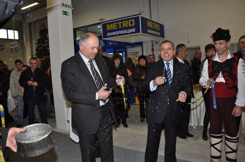 Лентата на 14-я магазин МЕТРО в България прерязаха кметът на Сливен Кольо Милев и генералният директор на МЕТРО „Кеш & Кери” България Емилиян Абаджиев.