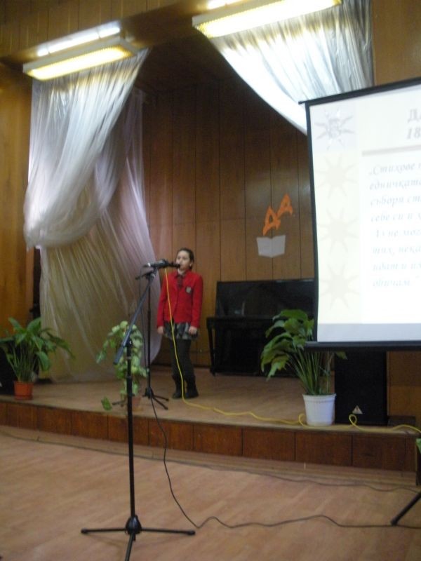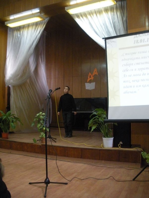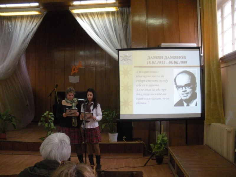 Днес, 17 януари2012 г. в читалище „ Зора” се проведе конкурс за рецитаторско майсторство „Магията на Дамяновото слово”, организиран от Хуманитарна гимназия.