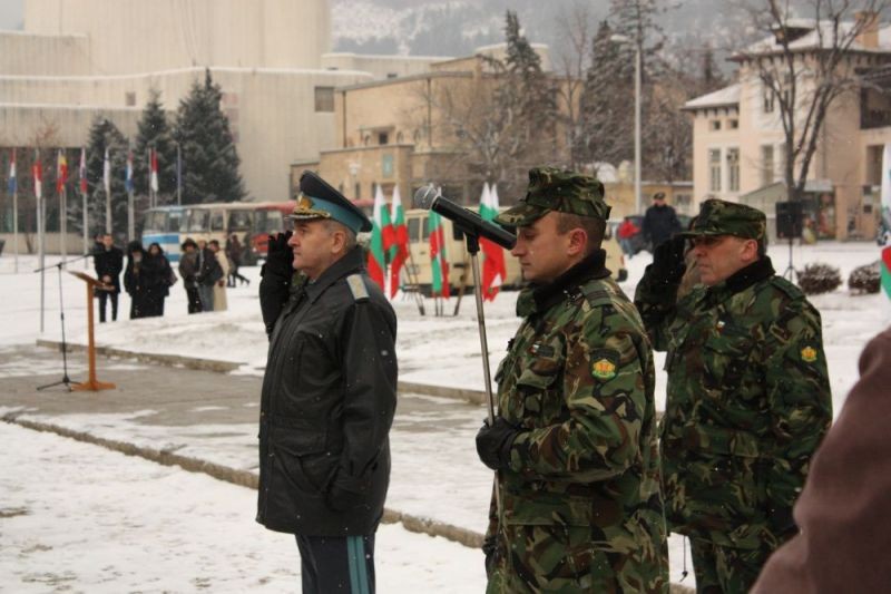 Г-н Кольо Милев кмет на Община Сливен поздрави военнослужещите. Сертификат за готовност на контингента за участие в операцията на Европейския съюз в Босна и Херциговина, връчи ген. Симеон Симеонов – н-к на отбраната.