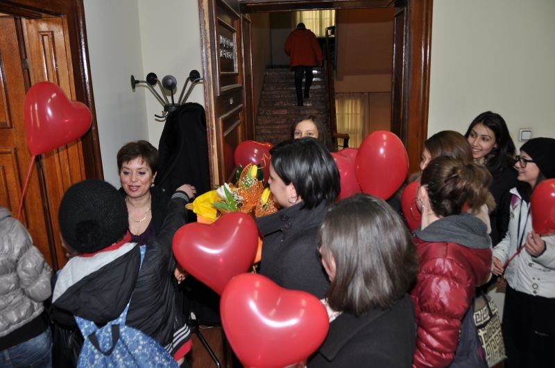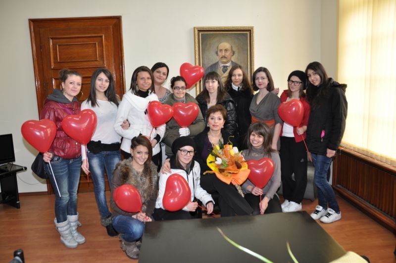 * Днес 14.02.2012 год. г-жа Келеведжиева бе посетена от група нейни ученици от ГПЗЕ „Захарий Стоянов”- Сливен, които приятно я изненадаха с поздравления за празника Свети Валентин.