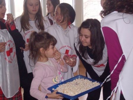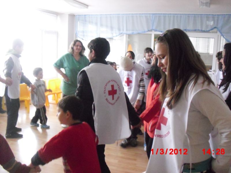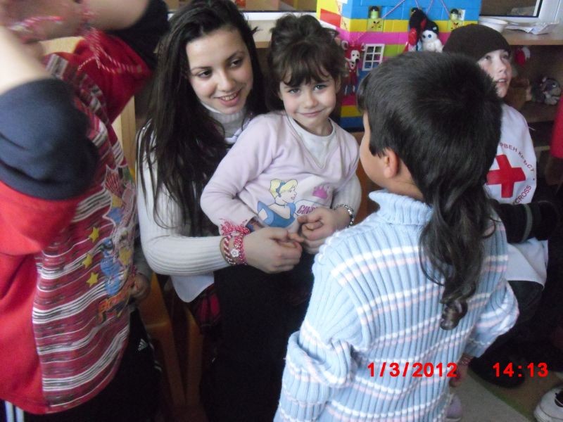 Клуб «Безвъзмездна помощ» на БМЧК към Хуманитарна гимназия «Д. Дамянов» подари мартенички на децата в детска градина "Калина". Освен с червено - белите символи на Баба Марта, за празника децата бяха зарадвани и с лакомства, закупени с част от средства събрани от продажба на направените саморъчно мартенички от доброволците и техните майки и благотворителния концерт «Безвъзмездна любов» проведен в навечерието на Свети Валентин.