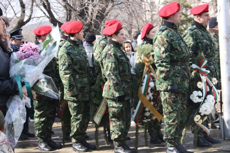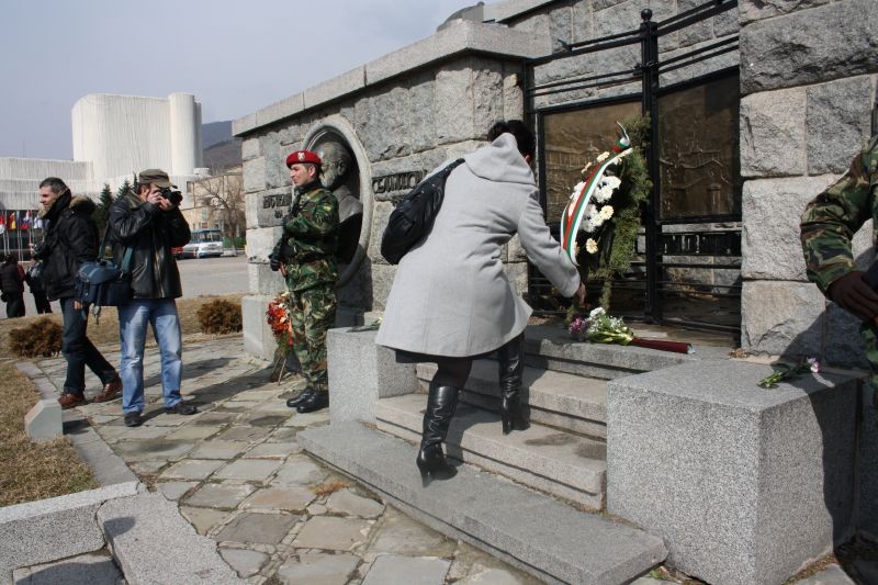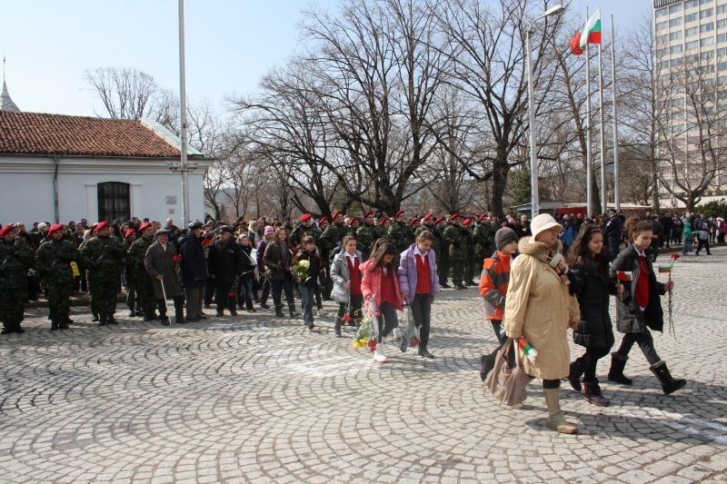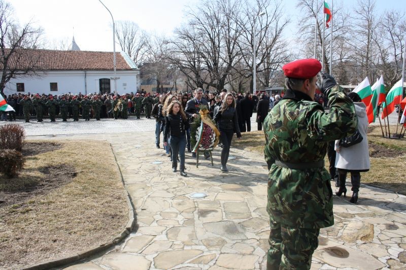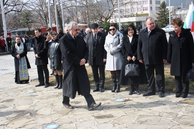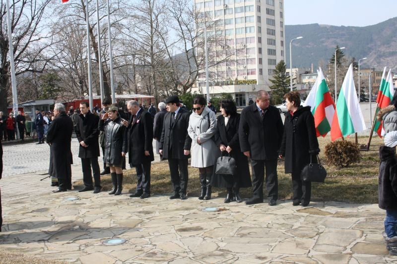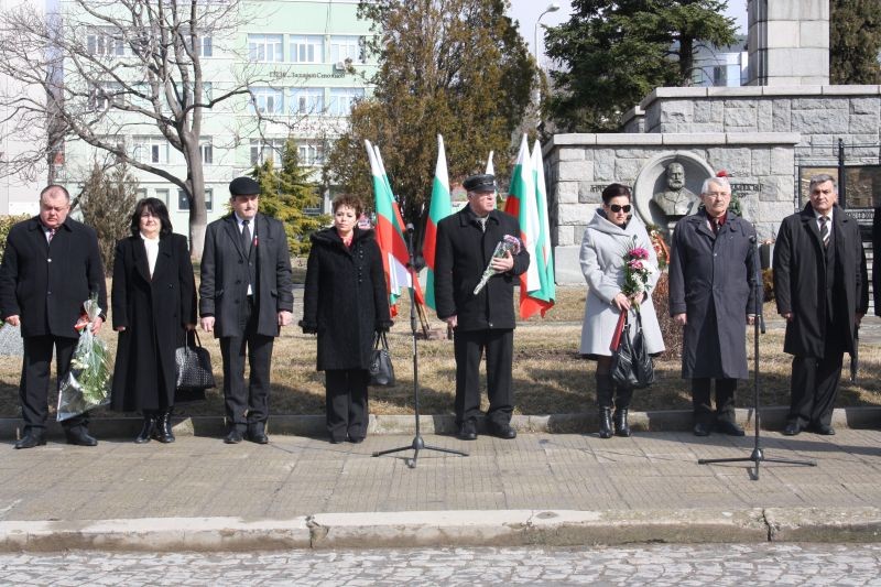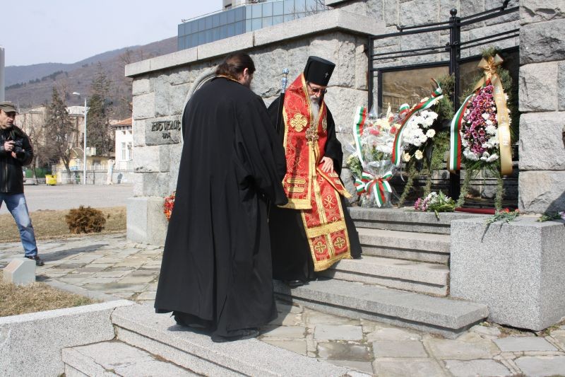 Представители на младежката организация поднесоха венец от името на областното ръководство на партията. Своята почит пред загиналите за свободата на България отдадоха и общинските съветници Здравко Костадинов и д-р Димитър Павлов. Сред официалните лица на церемонията бе и областният управител Марин Кавръков. Благодарствен молебен и панихида в памет на загиналите за Освобождението на България отслужи Негово Високопреосвещенство митрополит Иоаникий в съслужение със сливенски свещеници и дамски хор при катедралния храм „Св. Димитър". След ритуала духовният водач на Сливенска епархия се обърна към гражданите и гостите на града и ги поздрави за празника: