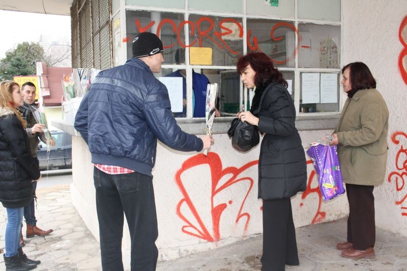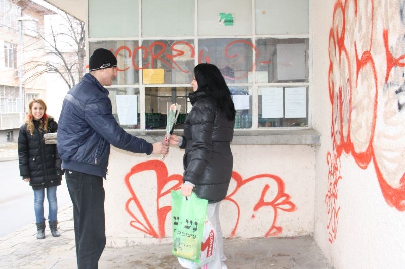 Младежи от ГЕРБ- Сливен подаряваха цветя за 8 март