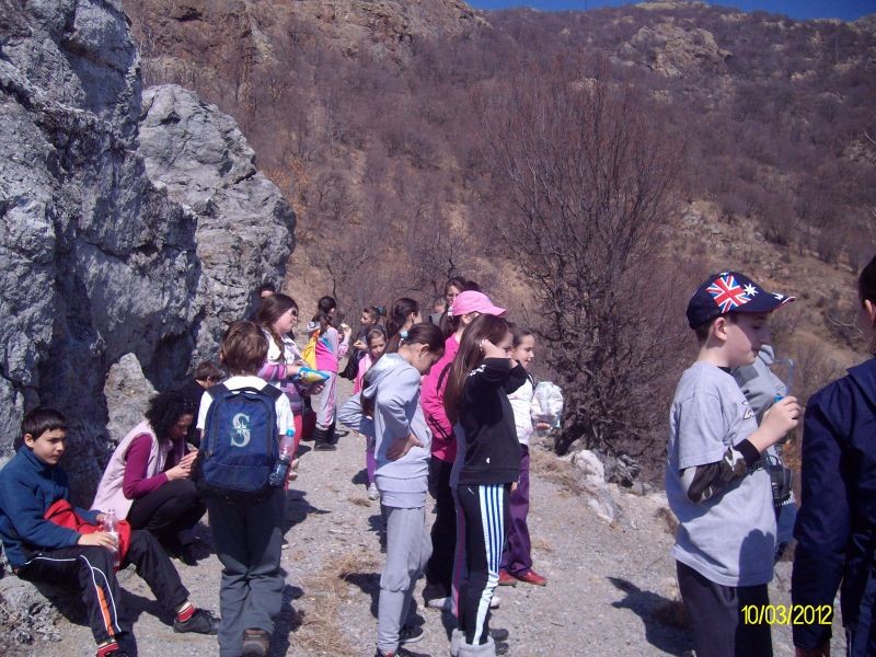 В прекрасния слънчев 17.03.2012г. голяма група от родители,учители, ученици от 5 клас по модул ,,Туризъм “и участниците в клуб,,Природолюбител” към ХГ,,Дамян Дамянов” се разходиха до най-голямата и най-забележителната пещера в ПП „Сини камъни”- ,,Змееви дупки”. Походът се осъществи под вещото ръководство на експерта от ДПП “С. Камъни”- Диана Костадинова, която разказа на малките природолюбители една от легендите за пещерата. Районът е интересен с множеството скални форми и причудлива природа. В близост тече Змеева река, образувана от сълзите на Змея (според легендата). Красотата и непристъпността на скалните зъбери заплени всички. Това привлекателно място за хората вдъхна много-оптимизъм и усмивки на младите природолюбители- откривателите на настъпващата пролет.