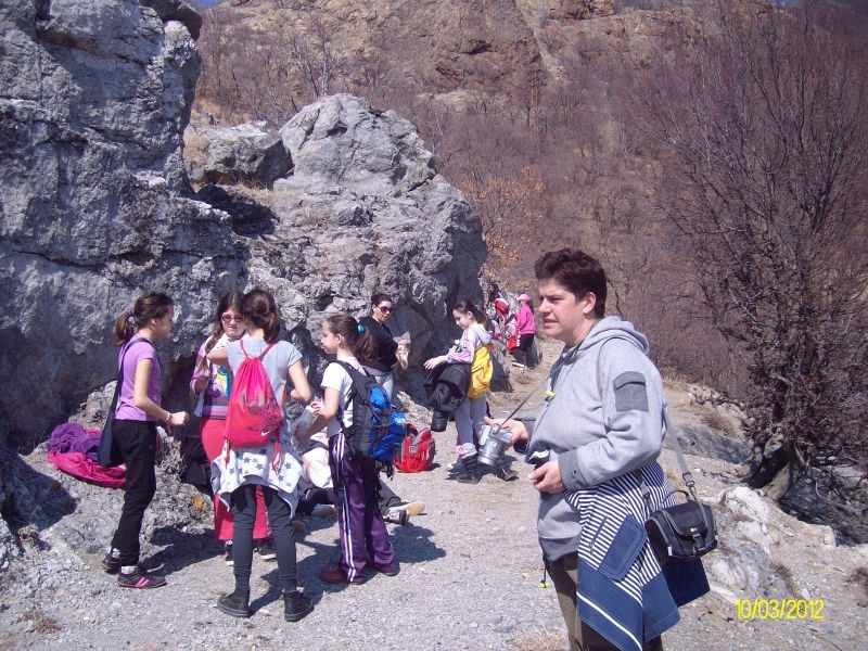 В прекрасния слънчев 17.03.2012г. голяма група от родители,учители, ученици от 5 клас по модул ,,Туризъм “и участниците в клуб,,Природолюбител” към ХГ,,Дамян Дамянов” се разходиха до най-голямата и най-забележителната пещера в ПП „Сини камъни”- ,,Змееви дупки”. Походът се осъществи под вещото ръководство на експерта от ДПП “С. Камъни”- Диана Костадинова, която разказа на малките природолюбители една от легендите за пещерата. Районът е интересен с множеството скални форми и причудлива природа. В близост тече Змеева река, образувана от сълзите на Змея (според легендата). Красотата и непристъпността на скалните зъбери заплени всички. Това привлекателно място за хората вдъхна много-оптимизъм и усмивки на младите природолюбители- откривателите на настъпващата пролет.
