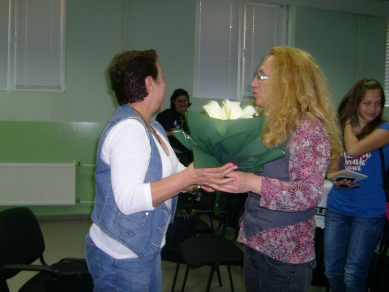 На 04.05.2012 г. участниците в проекта по секторна програма Коменски се срещнаха с г-жа Веселина Седларска. Изтъкнатата сливенска журналистка е носителка на наградата "Димитър Пешев" за етническа толерантност в медиите за 2004 г. Срещата започна с мястото на толерантността като характерна тема за книгата на Седларска "Пасажерите на Ной", продължи със случаи , свързани с търпимостта като морална категория и завърши с много въпроси, на които гостенката отговори изчерпателно. Всички останахме удовлетворени от проведения разговор.