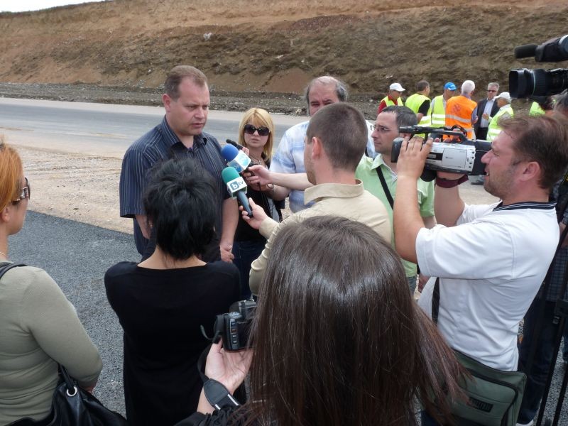 Областният управител на Сливен Марин Кавръков и председателят на УС на АПИ инж. Лазар Лазаров инспектираха строежа на лот 3 от автомагистрала Тракия в участъка край Сливен. Преди дни специалисти от лабораторията на Агенцията за пътна инфраструктура установиха несъответствия между положения върху асфалтовата настилка битум и изискванията за спецификациите на материала. При проверката днес стана ясно, че гръцката фирма строител е използвала некачествения битум при строежа на пробен участък от 500 м. В момента този пласт се отстранява и ще бъде преасфалтиран отново, което ще отнеме ден и половина и няма да забави строежа по график. В срок до 15 юни строителните работи трябва да бъдат приключени и участъка да бъде предаден на АПИ, а официалното откриване и прерязване на лентата е предвидено за 1 юли.