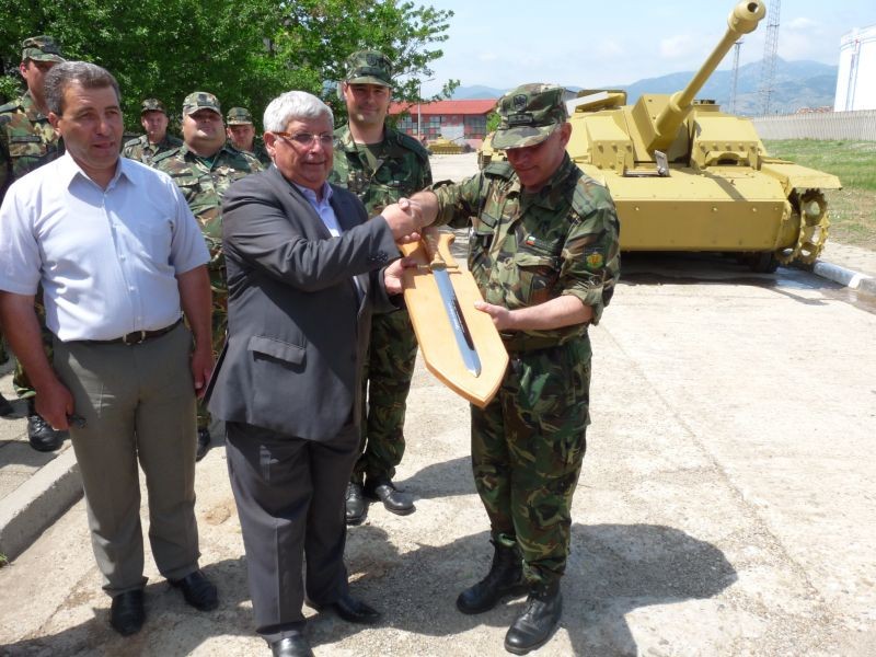 На 11 май се състоя визита на министърът на отбраната ген. Аню Ангелов в Сливен. В присъствието на Областния управител на Сливен Марин Кавръков, кметът на града Кольо Милев, американският посланик Джеймс Уорлик и главният секретар на МВР Калин Георгиев министър Ангелов и висши военни изгледаха част от съвместното българо-американско учение „Отвъд хоризонта 2012”. Учението се провежда в периода 7 – 18 май на базата на учебен полигон „Ново село”. В програмата бе включено и посрещане с военни почести на министър Ангелов в танковата бригада в Сливен. На пресконференция във Военен клуб пред медиите следобяд министър Ангелов опроверга слуховете за закриването на военна болница в града. Болницата ще бъде преструктурирана и превърната в търговско дружество, предлагайки лечебни услуги както на военнослужещи, така и на граждани по договор със здравната каса. След това министърът се срещна с военния състав от военните формирования в Сливен. В Областна администрация министър Ангелов проведе среща с Областният управител Марин Кавръков, на която бяха обсъдени идеи за стопанисването на военните имоти в града.