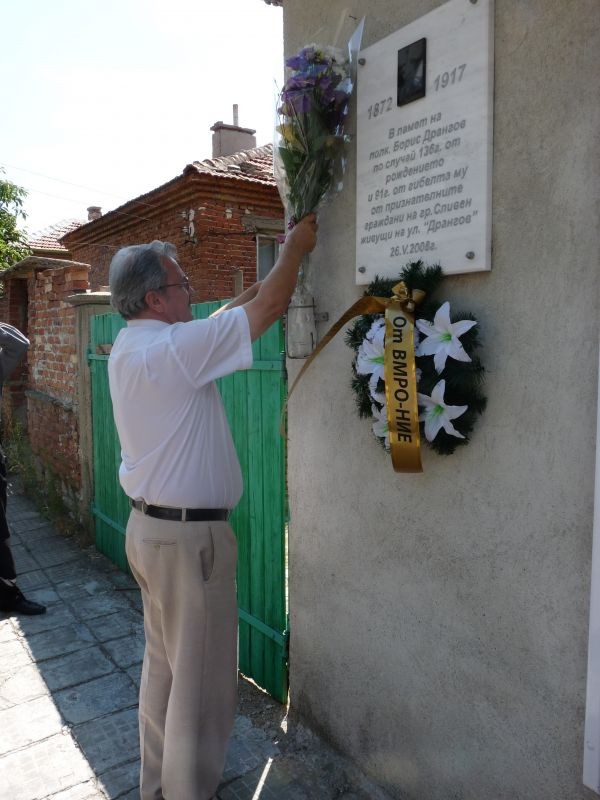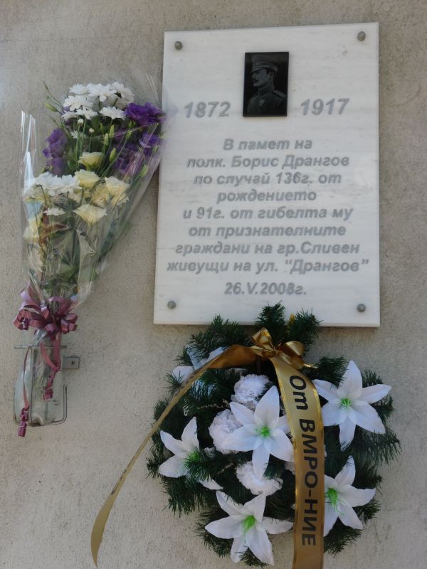 Областният управител Марин Кавръков поднесе цветя на паметната плоча на полковник Борис Дрангов, която се намира на едноименната улица в Сливен. На улица „Дрангов” има 32 къщи, в които живеят 132 граждани и всяка година се събират на датата на откриването на плочата – 26 май, за да почетат паметта и личността на този велик българин.