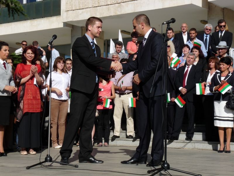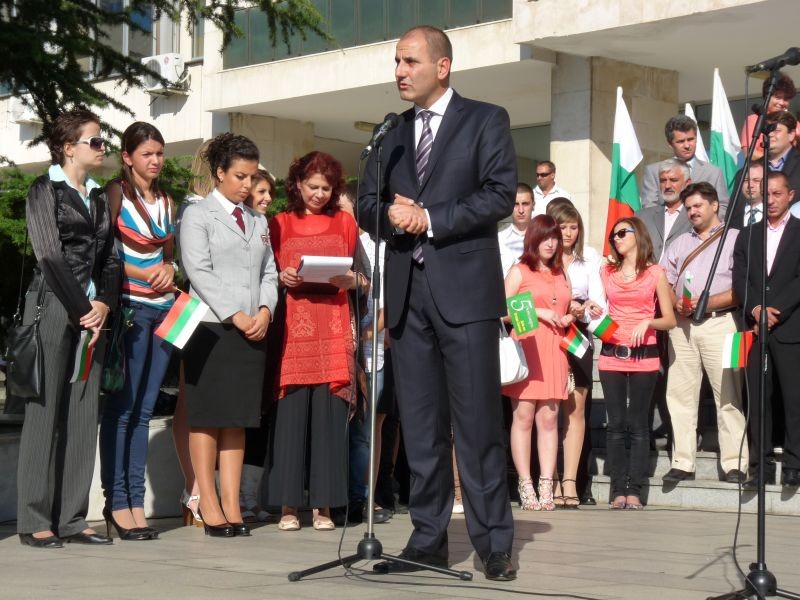 „На този ден през 1879 година е положен първият камък за възстановяването на Стара Загора. Оттогава всички се гордеем с нашия град, с богатата си история, с правите улици на Лубор Байер, с липите и творците на града, с неолитните жилища, Античния форум, операта и музея, библиотеката и Тракийския университет, Аязмото и още много други места... Но вие хората сте най-голямото богатство, защото всички ваши успехи, са успехи за града. Нека обичаме Стара Загора и се грижим за нея, с общи усилия да я направим по-добро място за живеене" - с тези думи кметът на Община Стара Загора Живко Тодоров се обърна към гостите и хилядите хора, събрали се на площада пред общината. Той приветства вицепремиера за това, че споделя празника на старозагорци и му връчи благодарствен знак. Живко Тодоров предаде символичния ключ на града на новоизбрания кмет на Млада Загора -десетокласничката Десислава Костова от Търговска гимназия „Княз Симеон Търновски" , която поздрави младите хора и всички старозагорци с празника. Повече от час продължи празничното шествие по централната улица на града. В него участваха училища, детски градини, читалища, културни институти, Тракийския университет и много други.